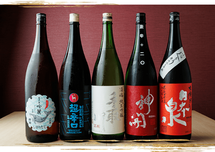 当店の日本酒は、定番を置かず、季節限定・少量流通の銘柄を中心に取り揃えております。毎回ラインナップが変わるため、日本酒好きの方にもご好評をいただいています。接待や会食でもご利用いただきやすい、一期一会のセレクトです。