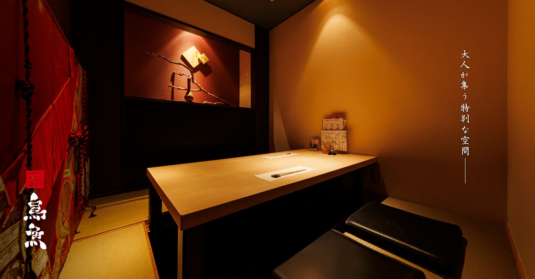 落ち着いた雰囲気の完全個室。最大4名までご利用いただけるテーブル席で、接待や会食など幅広いシーンにご利用いただけます。周囲を気にせず会話を深められる“大人のためのプライベート空間”としてご好評いただいています。